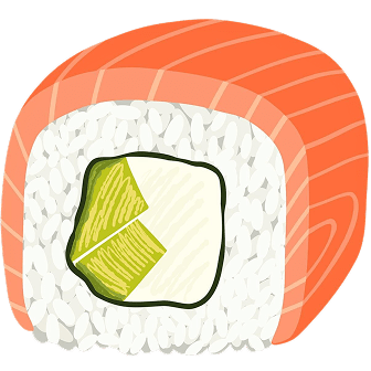 Рис.лосось, сыр, огурец, икра летучей рыбы, сырная шапочка. 270гр